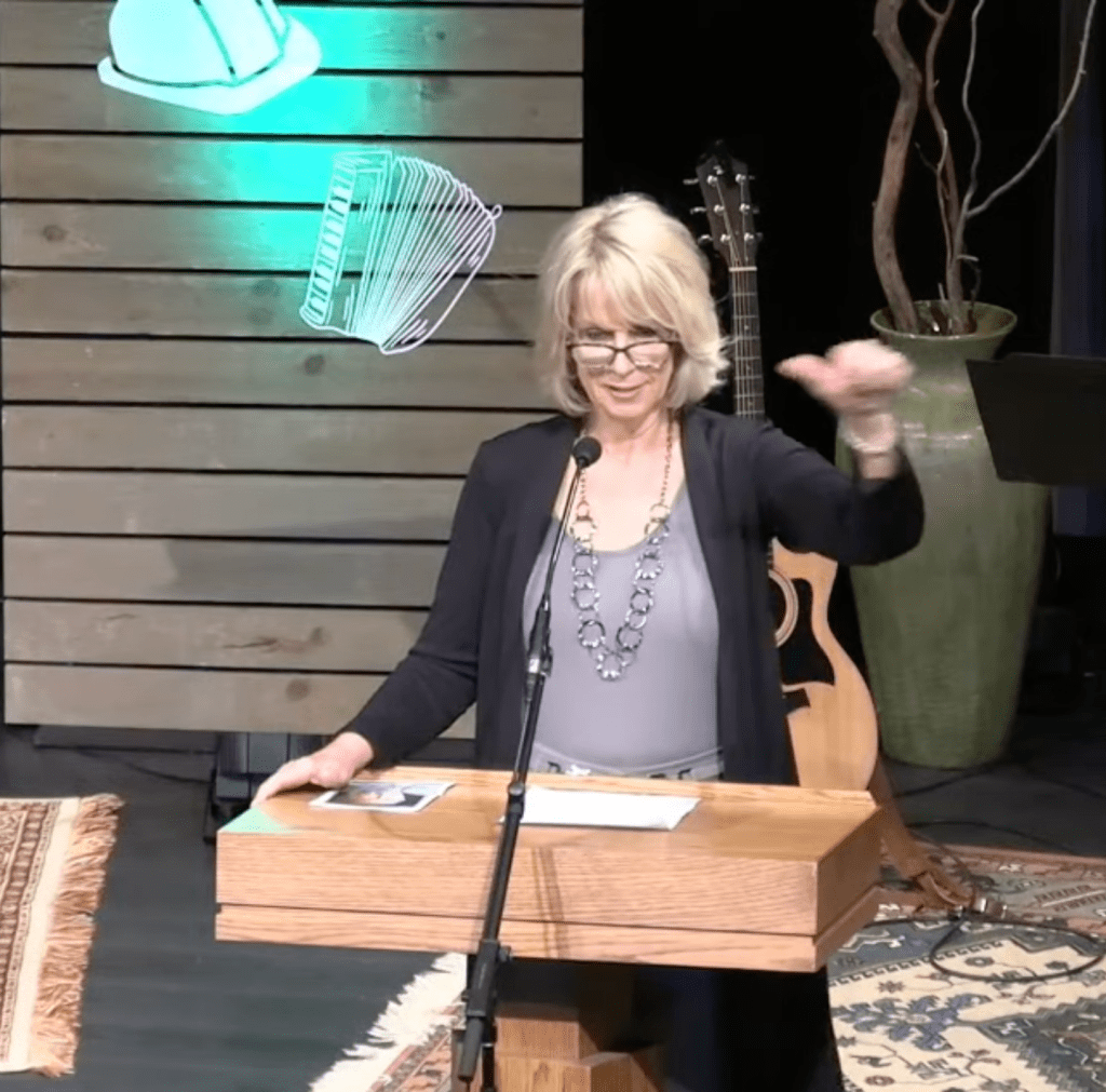 Hilda Reinders-Balamut talking about her father’s hands at the funeral. She let the audience in on a family secret: Fred was not handy around the house. Mom (Jane) was the handyman at home.