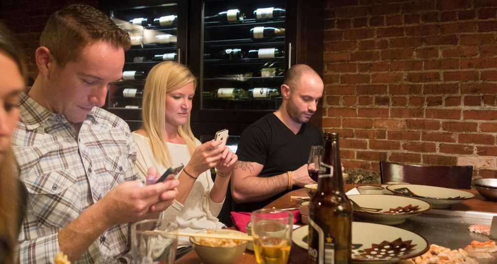 Entitled “Cell Phone Zombies” this Flikr photo demonstrates how even parties are no longer entirely social events.
