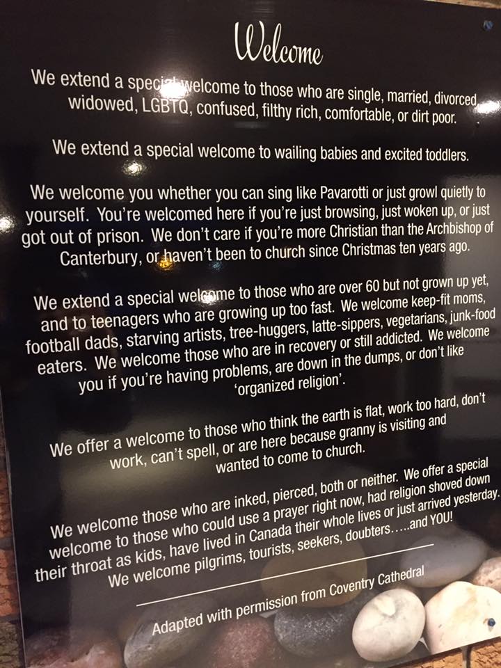 All are welcome to read and respond to this blog, and I say this in the spirit of the sign found in a Christian Reformed Church’s foyer (pictured left).